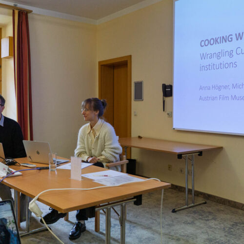 The morning featured work sessions with Armin Dadras presenting his research on image compositions and content prediction, followed by an invited talk from Michael Loebenstein and Anna Högner from the Austrian Film Museum. Their presentation, "Cooking with Water - Archives Wrangling Cultural Heritage Data," provided valuable insights into the newly structured archive system at the Film Museum, highlighting how improved organization has enabled more efficient access to valuable cultural data. This presentation resonated strongly with several PhD students whose research relies on cultural heritage datasets.
