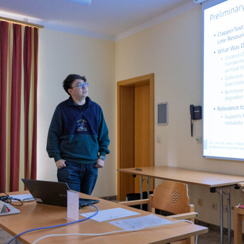 Michaela Tuscher presented her work on relationship analysis with a focus on art history, followed by another invited talk from external experts Erwin Feyersinger and Claudius Stemmler from the University of Tübingen. Their presentation, "The Scholar in the Loop: The Challenges of Ambiguity in Film," provided new insights into the interpretive challenges inherent in film analysis and the role of human expertise in computational workflows. This perspective proved particularly valuable for PhD students working on automated analysis methods.